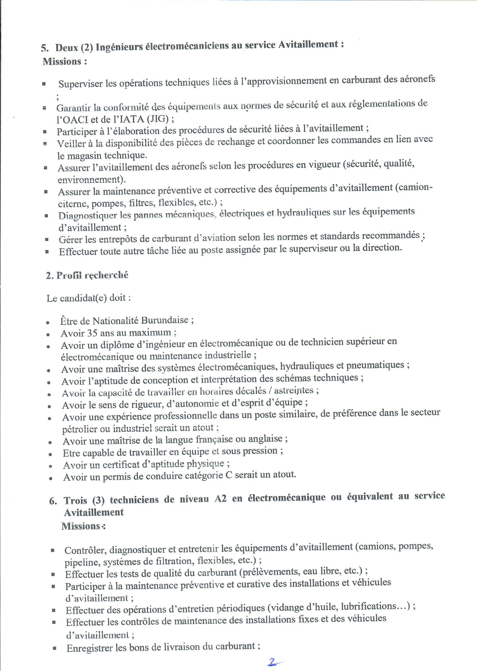 • Deux (2) électromécaniciens et trois (3) techniciens de niveau A3 au service Avitaillement ;