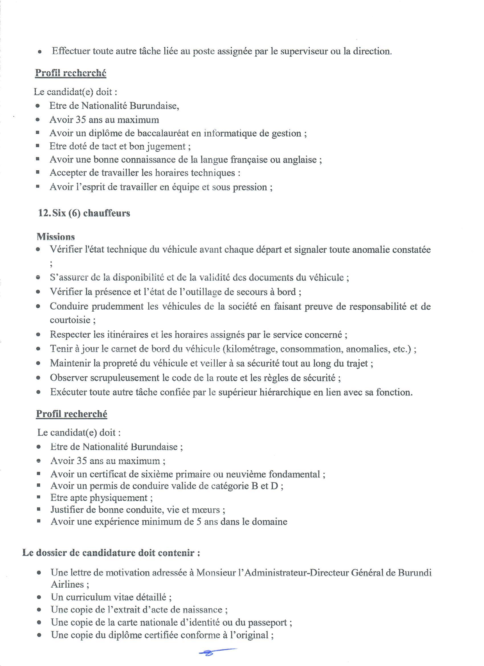 • Une lettre de motivation adressée à Monsieur l'Administrateur-Directeur Général de Burundi Airlines;