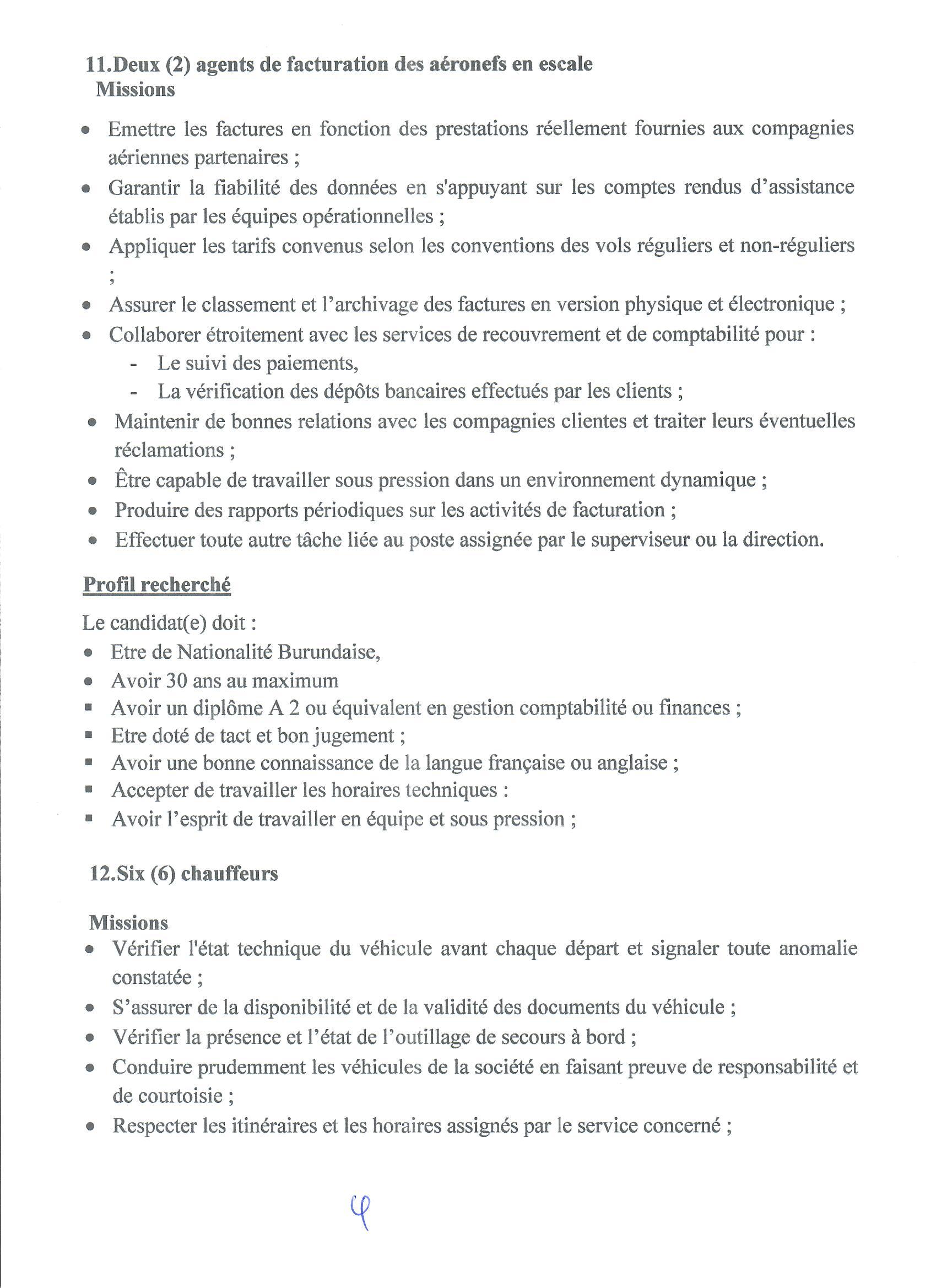La société Burundi Airlines s.m. voudrait recruter le personnel suivant:...