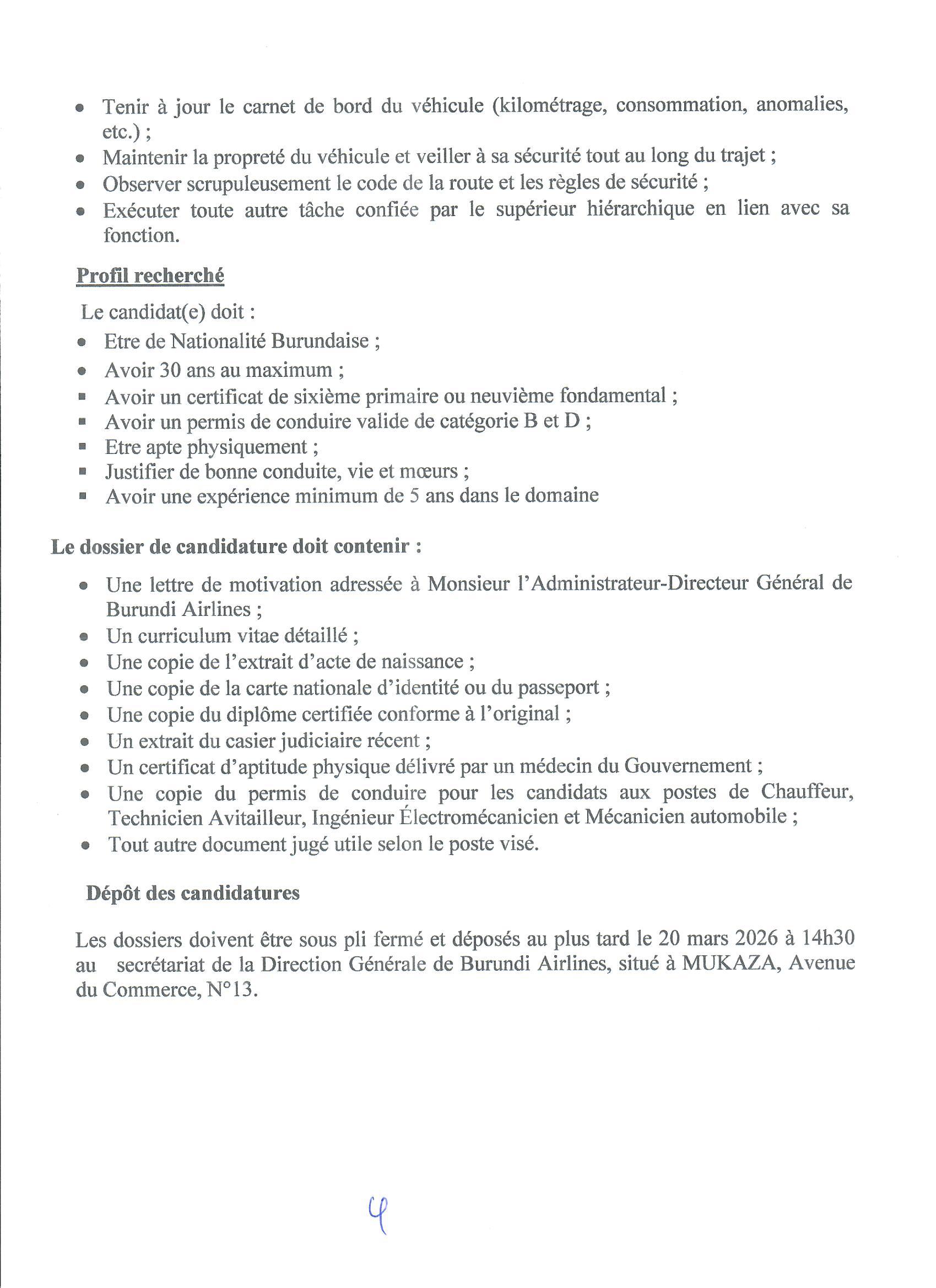 La société Burundi Airlines s.m. voudrait recruter le personnel suivant:...