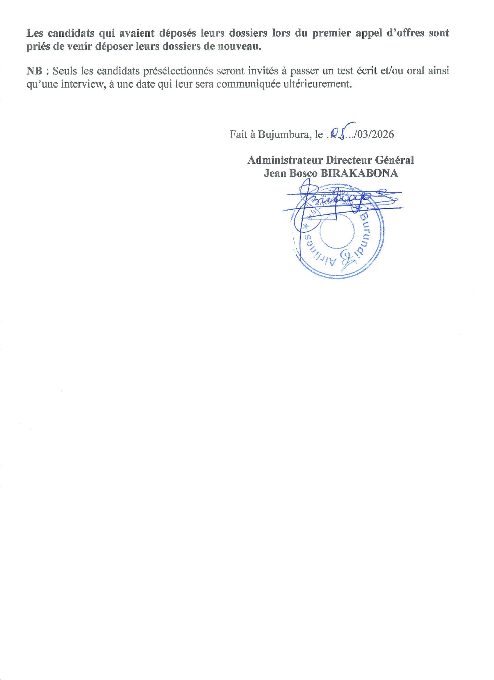 AVIS DE RECRUTEMENT DU PERSONNEL : RELANCE (Suite 3)